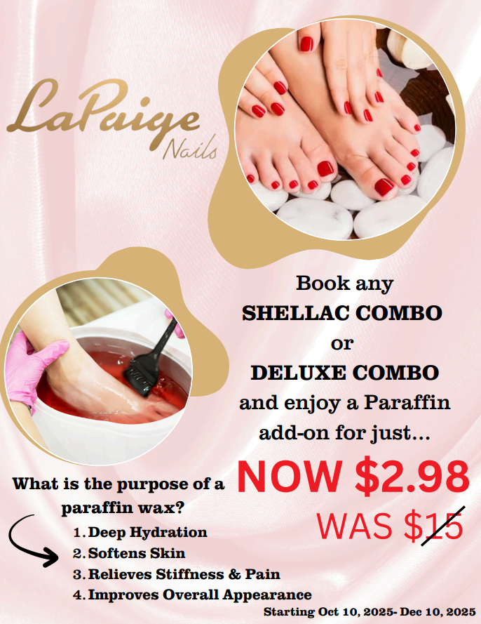 Pamper yourself with our ❤️luxurious $2.98 PARAFFIN TREATMENT!❤️ (Valid until December 10, 2025)